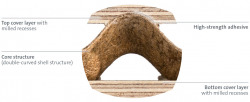Materiāla lieliskās īpašības ir panāktas, pateicoties tā unikālajai struktūrai, kas sastāv no diviem ārējiem slāņiem un trīsdimensiju kopozītmateriāla vidusslāņa. Personalizēti frēzēti dobumi ārējos slāņos un augstas stiprības līme nodrošina plātņu stabilitāti iespējamas deformācijas apstākļos.